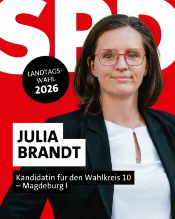 Ich bin Julia Brandt, 41 Jahre alt, Nachhaltigkeitsmanagerin bei einer Wohnungsgenossenschaft und seit Jahren engagiert im Jugendhilfeausschuss der Stadt und in unserer Partei. Von 2019 bis 2024 war ich Stadträtin in Magdeburg.